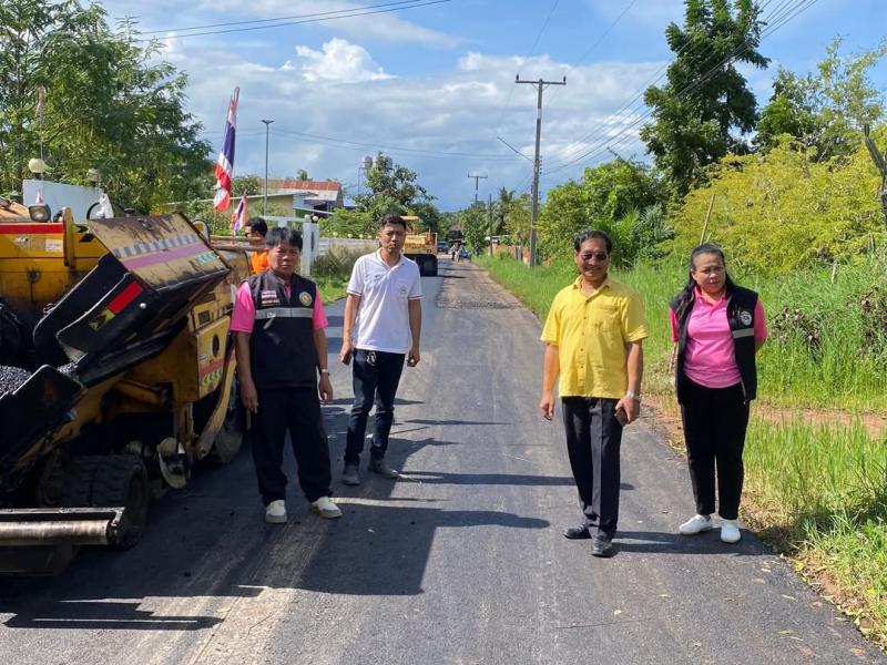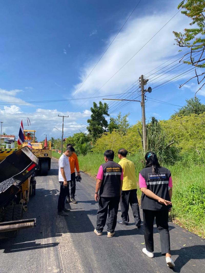 คณะผู้บริหาร ลงพื้นที่ตรวจสอบความคืบหน้าของงานโครงการก่อสร้างถนนแอสฟัลต์ติกคอนกรีต (Asphaltic Concrete)