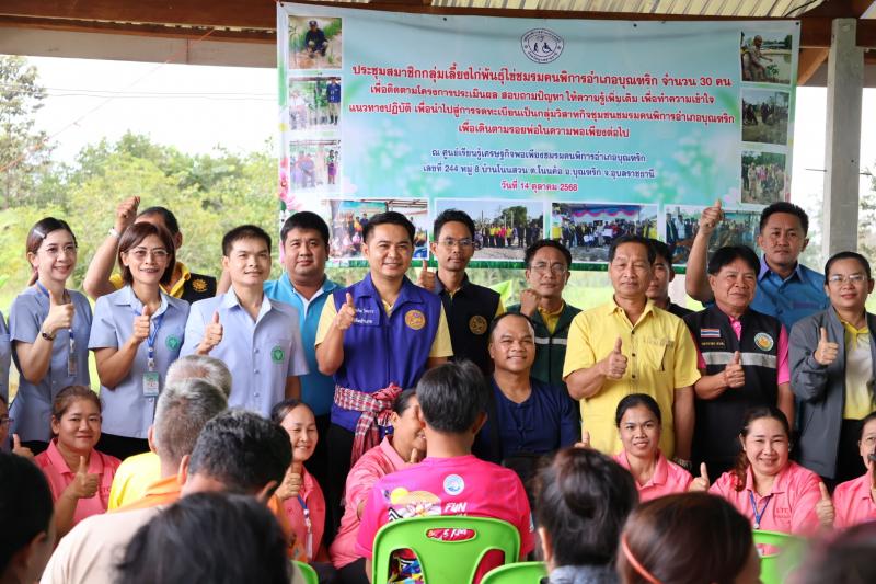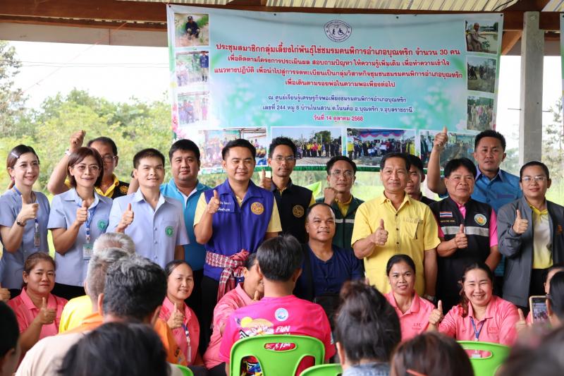 ร่วมพิธีเปิดการประชุมโครงการฝึกอบรมส่งเสริมอาชีพการเลี้ยงไก่พันธ์ไข่ เพื่อเพิ่มรายได้เสริมให้กับผู้พิการและผู้ดูแลคนพิการ