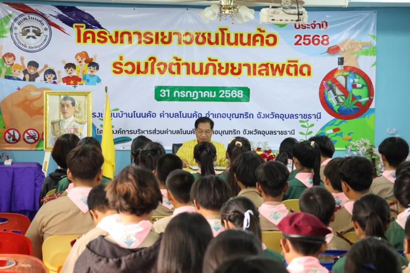 31 กรกฎาคม 2568 เวลา 09.00 น. นายคำพูล พันพุฒ นายกองค์การบริหารส่วนตำบลโนนค้อ เป็นประธานในพิธีเปิดโครงการเยาวชนโนนค้อ ร่วมใจต้านภัยยาเสพติด ประจำปีงบประมาณ 2568 เพื่อเผยแพร่ความรู้ ความเข้าใจเกี่ยวกับโทษของยาเสพติดแก่เด็กและเยาวชนในเขตพื้นที่รับผิดชอบขององค์การบริหารส่วนตำบลโนนค้อ และเฝ้าระวังการแพร่กระจายของยาเสพติดสู่เด็กและเยาวชนในชุมชน ณ ห้องประชุมโรงเรียนบ้านโนนค้อ ตำบลโนนค้อ อำเภอบุณฑริก จังหวัดอุบลราชธานี